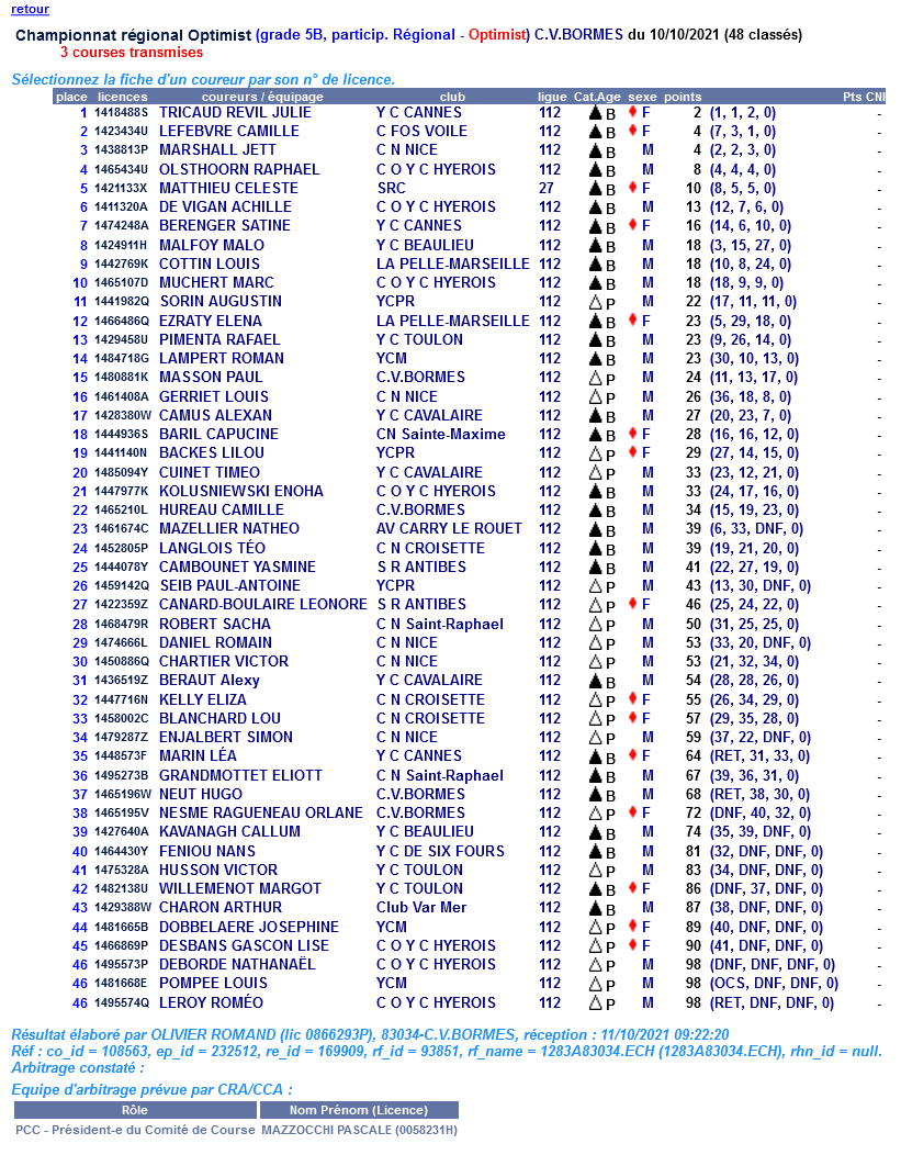 Le dimanche 10 octobre 2021, l'équipe Optimist était en régate à Bormes-les-mimosas.